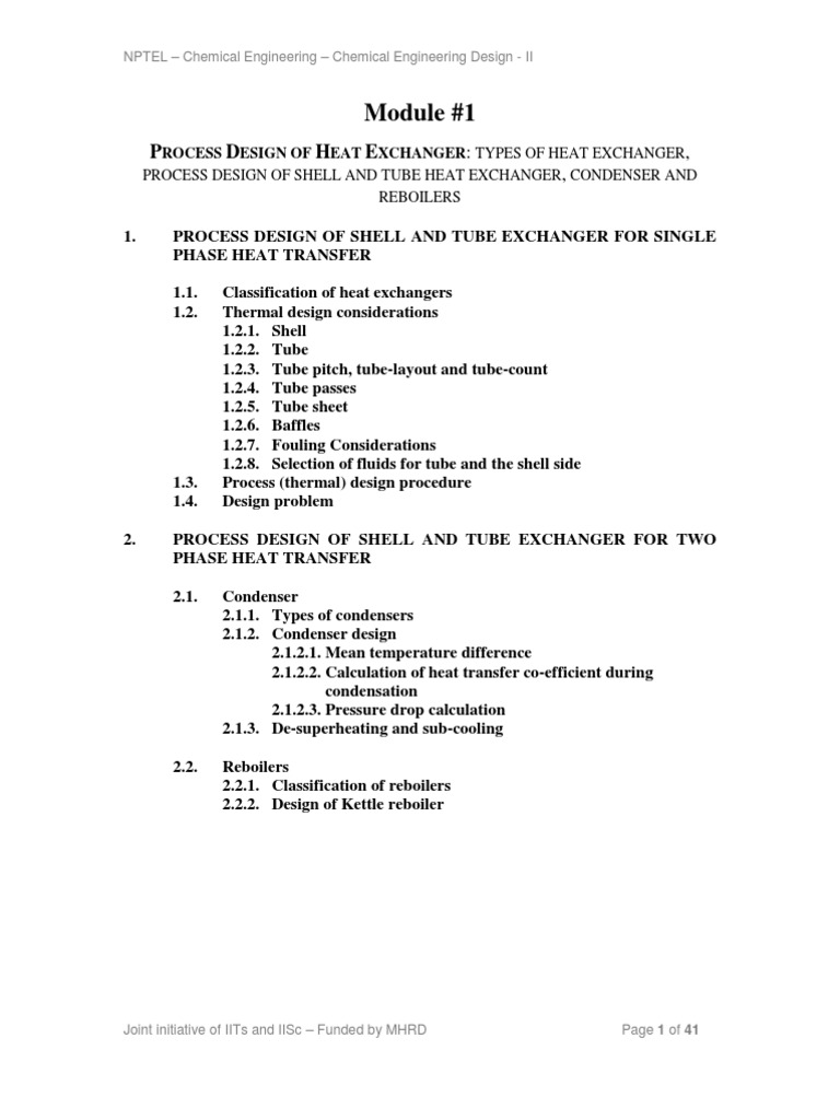 NPTEL – Chemical Engineering – Chemical Engineering Design - II Joint initiative of IITs and IISc Refer module # 2 for the mechanical design of shell and tube heat exchanger. Lecture 5: Shell and Tube Exchanger for Two Phase Heat Transfer 2. ... View Doc